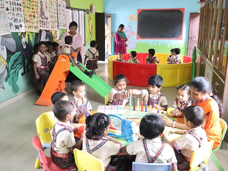 Play way method at kindergarten is an important methodology in child education and child psychology, particularly at the pre-school level. It emphasizes education through various activities like playing, communication with peers and teachers. This helps to enhance the various aspects of development like physical, psychological, intellectual, motor skills and so on. The School has been designed to enrich the child’s development in a holistic manner. The curriculum is focused on a balance between spontaneous and guided learning experiences. We designed many activities to introduce the children to the foundation of Arts, Math, Science, Music, Languages etc… in play way method. We have equipped many play articles for the kinder world. We planned a huge number of games for the children. Mandevelop their creative skills.