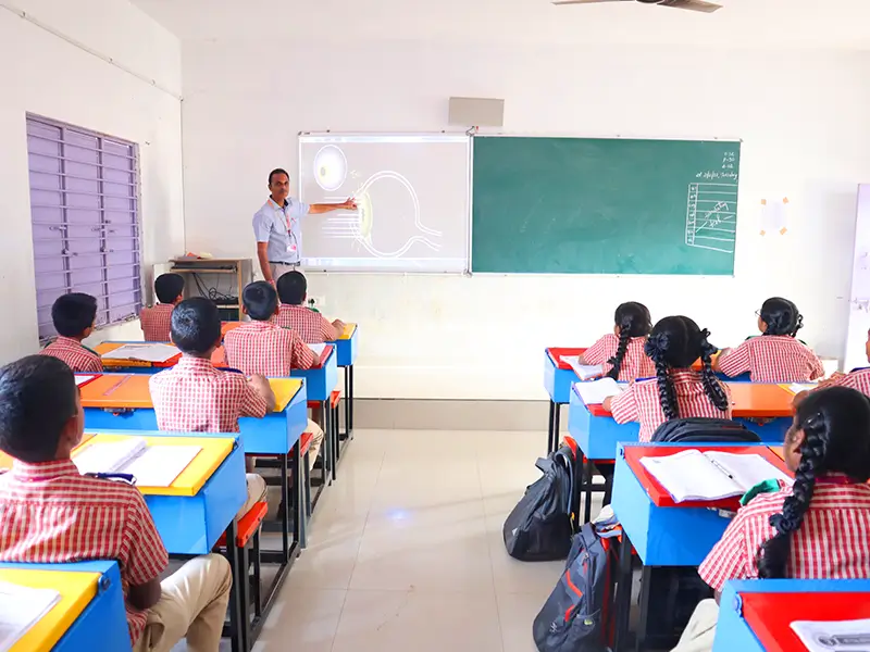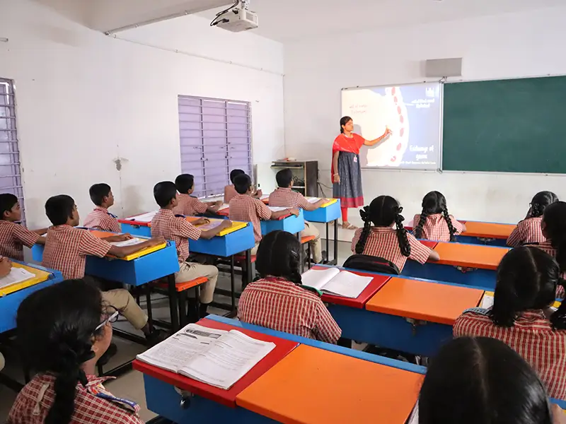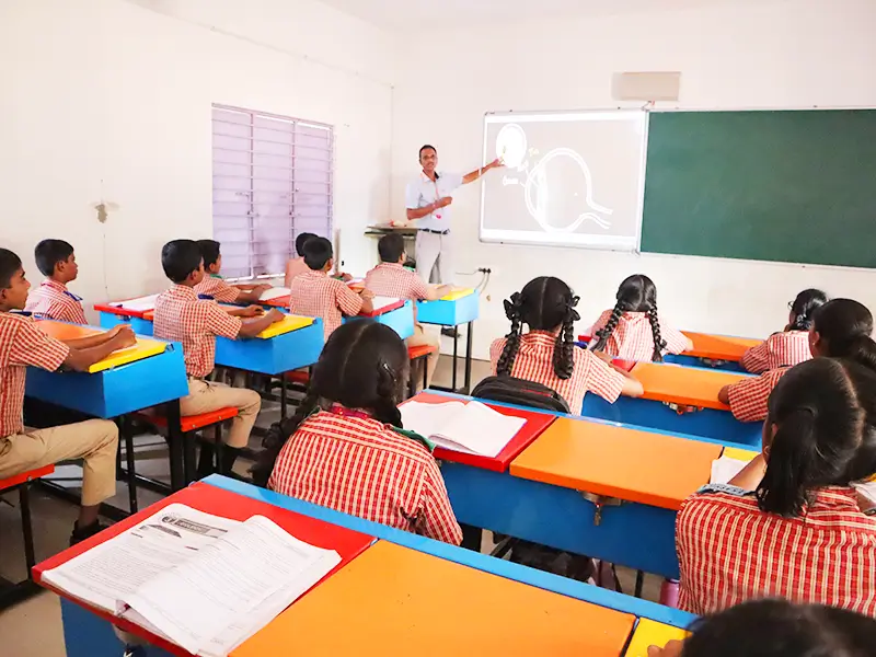 Classroom learning is supplemented by impressive 'live and media' observations. Beautiful and powerful images of multi-media presentations navigate the child's mind through a world of fantasy. A smart classroom with LCD projectors and latest computer connected to a centralized server and supported by expertized technical staff and internet access with excellent content is our teaching methodology. Toppers and slowlearners visualise the concepts through digital classes in an easy manner.